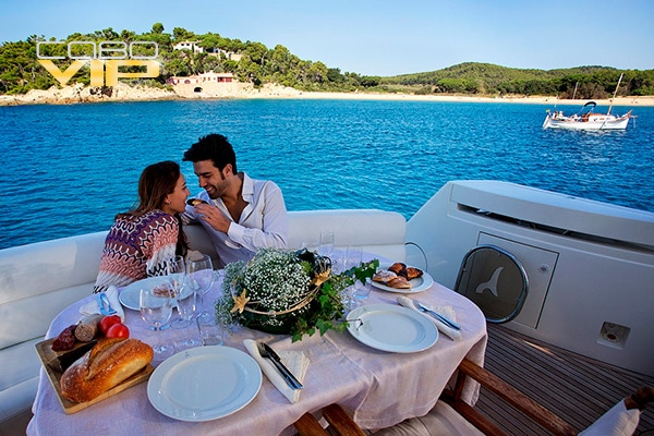 En uno de los Yates para Vacaciones en pareja en Los Cabos, en el día podrás disfrutar de una comida romántica, apreciando las bellas vistas que ofrece Los Cabos, en la compañía de tu pareja, así mismo podrán pasar el resto de el día navegando o simplemente tomando el sol.