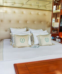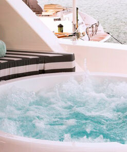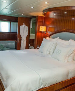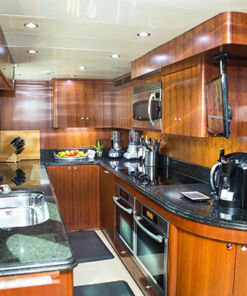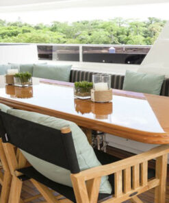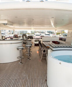 Además cuenta con una plataforma de baño, ducha de cubierta, jacuzzi y amplias cama de sol en la cubierta, y no se puede pasar por alto la parrilla y los asientos para comer al aire libre. Con todas estas características, quien va a querer poner los pies en la tierra otra vez, ¿No? Este Mega Yate, tiene la capacidad de 8 personas, distribuidas en cuatro habitaciones, que incluyen baños en la suite, y además hay 4 miembros en tripulación. Así que es super seguro que podrás pasarla bien, sin estar preocupado por nada.